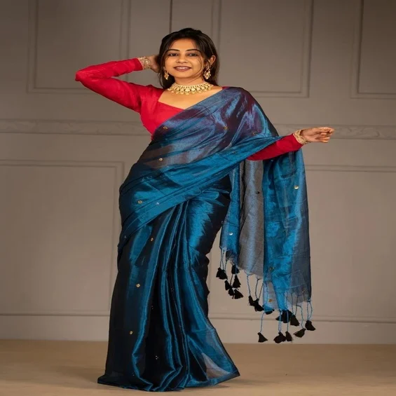 Ginni Khadi Tissue Sarees beautifully combine the elegance of traditional khadi with the soft shimmer of tissue fabric, creating a perfect balance of comfort and luxury. These sarees are lightweight, breathable, and easy to drape, making them ideal for festive occasions, weddings, and cultural celebrations. The handwoven khadi texture lends an earthy, authentic charm, while the tissue finish adds a subtle golden sheen that enhances their grace. Available in soothing pastel tones and rich traditional shades, Ginni Khadi Tissue Sarees reflect timeless craftsmanship and effortless sophistication, making them a favorite choice for women who appreciate classic beauty with a modern touch.